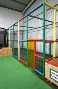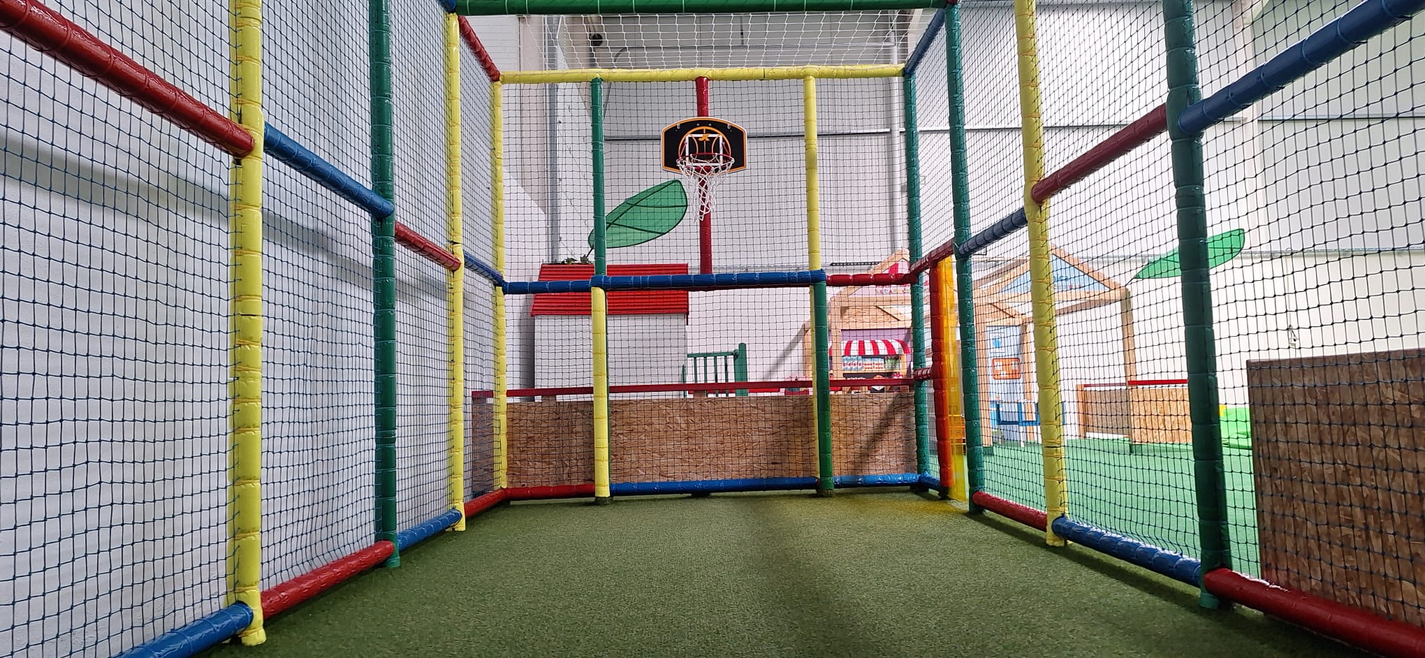 Um campo de redes onde podem jogar com segurança futebol e/ou basquetebol.